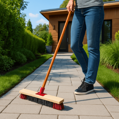 Pour un nettoyage plus intense, notre balai brosse terrasse offre une solution idéale pour les surfaces rugueuses comme le béton ou les dalles de pierre.